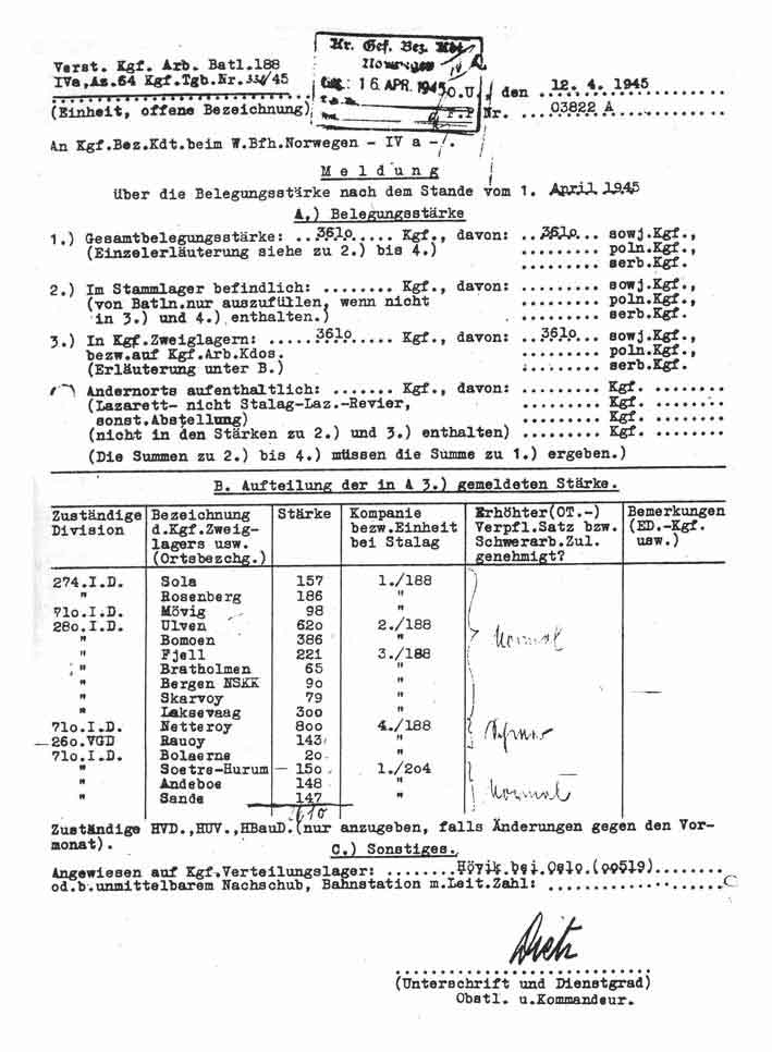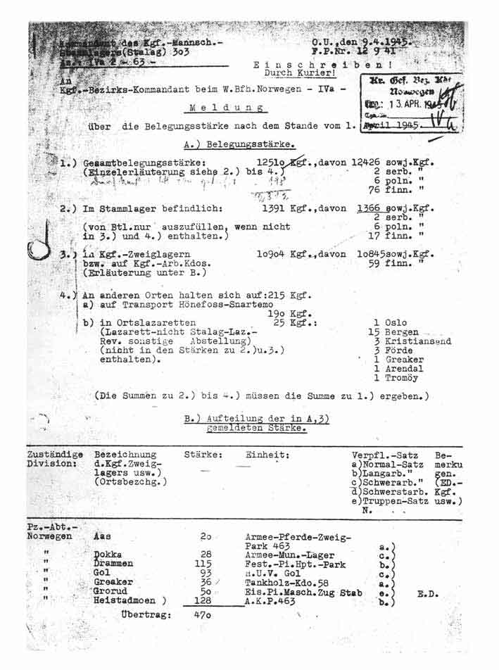 Dokumenter fra Krigsgravtjenesten og Deutsche Oberbefehlshaber Norwegen, Riksarkivet og Public Record Office, England. I Stalag 303 og 380 er en del krigsfanger merket med E.D. Dette betyr at de var i ergänzungsdienst, en hjelpetjeneste i de tyske styrker. Disse fikk da rasjoner og pleie som de tyske soldater. Men de ble fremdeles regnet som krigsfanger og hadde ikke avgitt eden til føreren.