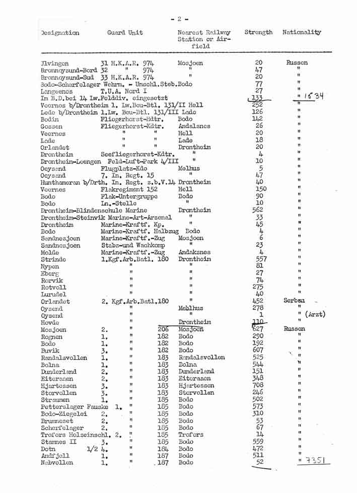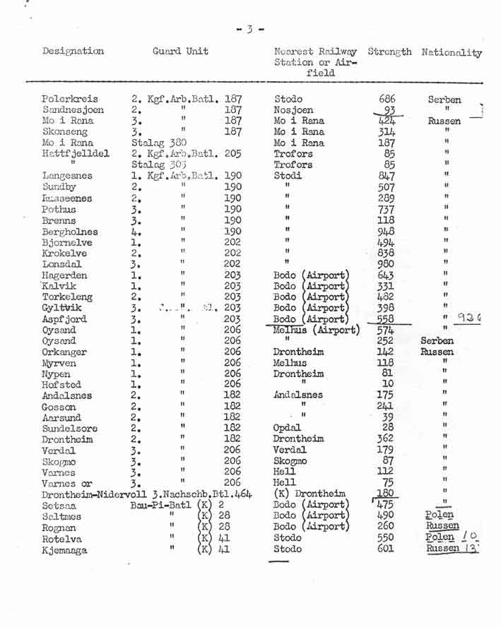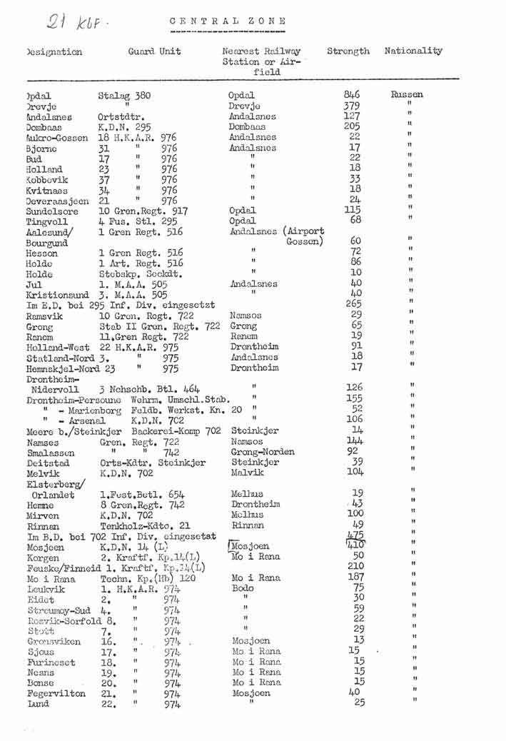 Stalag 380. Central zone. Fylkene Møre og Romsdal, Trøndelagsfylkene og deler av Nordland. Også med Org. Todt bataljonene 180-206. |