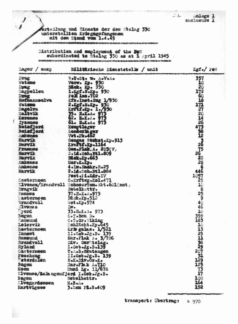 Listene er fra tre ulike kilder og er utlevert på tre datoer, men har samme dato for antallet krigsfanger. Dessverre så avviker tallene i noen av listene og de inneholder også ulikt antall fangeleirer. Listene fra Stalag 303 er opprinnelige tyske rapporter fra april 1945, Stalag 380-listen er fra 11-14. mai 1945 da britene fikk overlevert lister i England. Stalag 330-listen er fra en større oversikt fra tyskerne 4. september 1945.