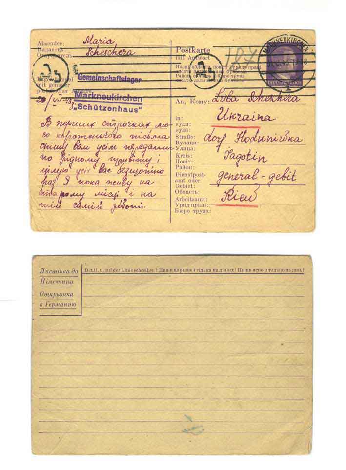 Postkort sendt av østarbeider i Tyskland 1943. Fra Michael Stokkes samling.